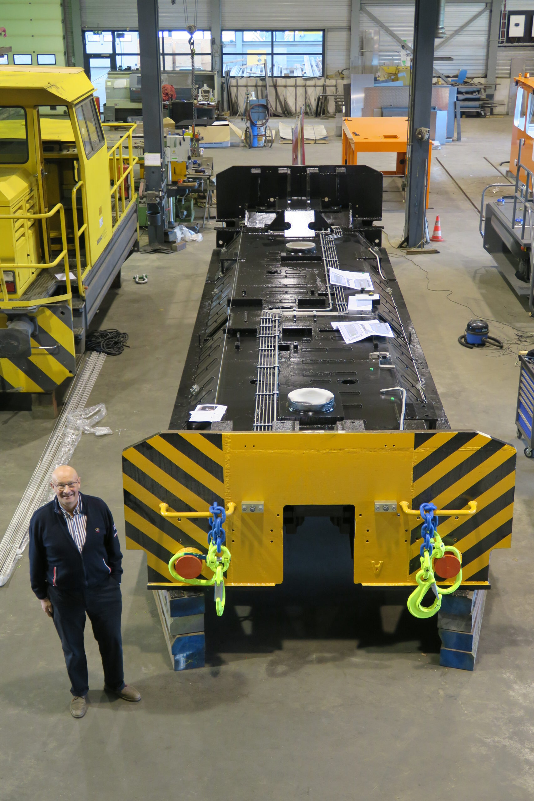 Onder andere voor het verplaatsen van de loc frames, en op later moment ook de complete locs, zijn 2 stuks 50t kranen aangeschaft en inmiddels geïnstalleerd, zodat de locs eenvoudig kunnen worden verplaatst binnen onze fabriek.
