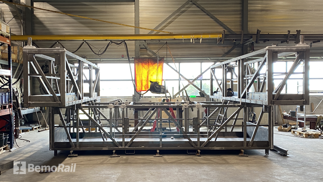 augustus 11, 2025Deze foto’s tonen het gloednieuwe onderhoudsplatform van Bemo Rail, vastgelegd direct na de lasinspectie en vóór het aanbrengen van de coating. De robuuste stalen constructie is speciaal ontwikkeld voor het onderhoud, de inspectie en de vervanging van trollyrails op ZPMC Ship-to-Shore kranen.