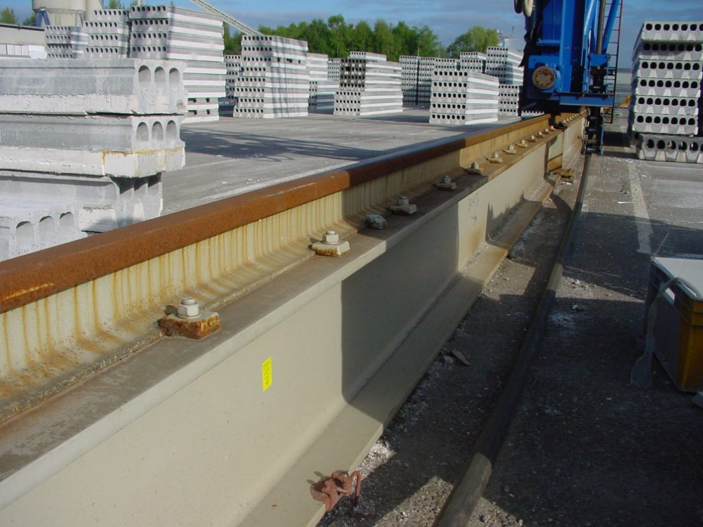 Kenmerkend voor een kraanbaan op een stalen balk is de rails die veelal bevestigd wordt op profielstaal, met verstelbare klemmen en al dan niet met elastisch onderlegmateriaal.
