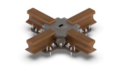 Bij dit systeem worden de railconstructies op een stalen ligger gemonteerd.